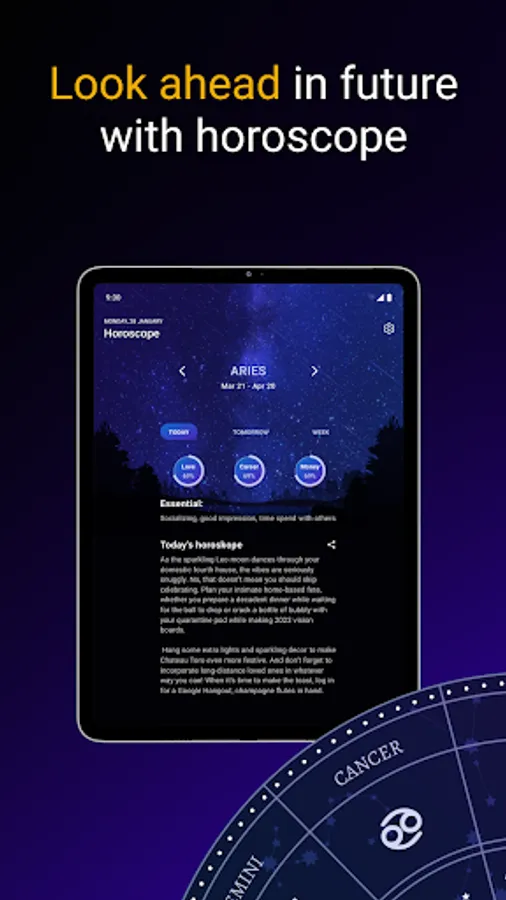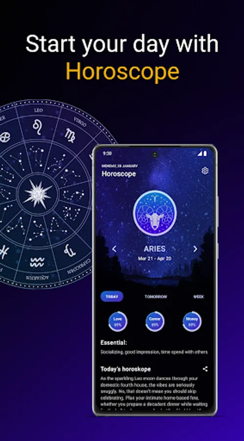 ⬇Download ⬇ horoscope today program and start your everyday astrology journey. You can check not only your sign but any else! We calculate your predictions depending on your date and place of birth. You can return to an app whenever you want and check predictions for any day! Install and use on everyday bases! ⚡
