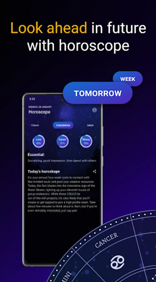 Daily horoscope is a useful astro logy app for everyone to check your predictions every day and get into your future with courage. You will find out why this day is the best for you - personal relationships, friendship, career, business, training, important events, meetings, luck, or peace of mind. Check your horoscopes tomorrow, today, a week later, a month later, or even for a full year! What is waiting for you? Don`t hesitate to check!