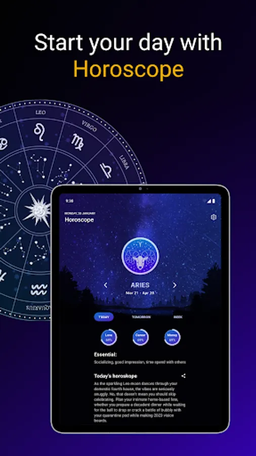 Are you into astrology? 😍 Then we know what you need! There are so many sites, applications, and pieces of advice about horoscope predictions on the internet and all around us in general that it can be really overwhelming! 🤯 So we decided to collect all the most important features in one convenient everyday predictions and advices from the starts app. Find our everything to any zodiac sign - Taurus, Gemini, Virgo, Cancer, Scorpio, Sagittarius, Libra, Leo, Capricorn, Pisces, Aries, Aquarius.