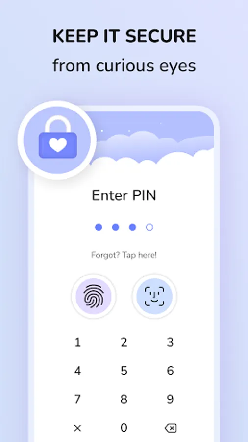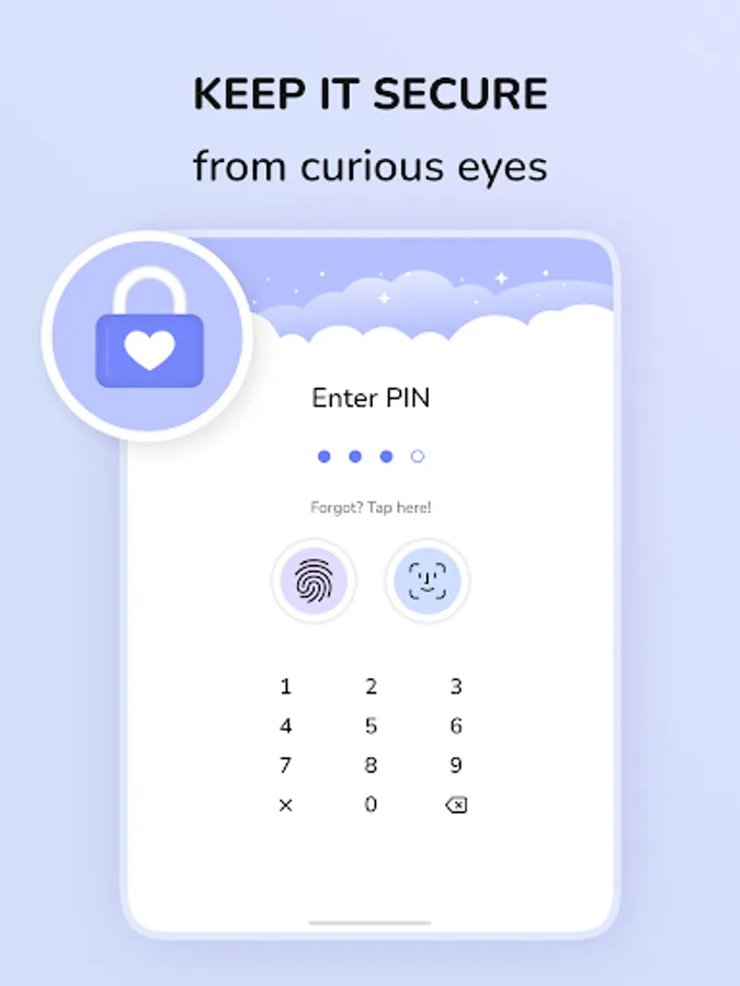 Use fingerprint or face-ID to keep your personal notes private. Or set a password to be sure that your diary is protected.