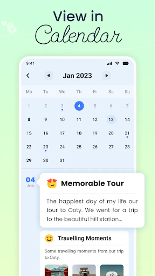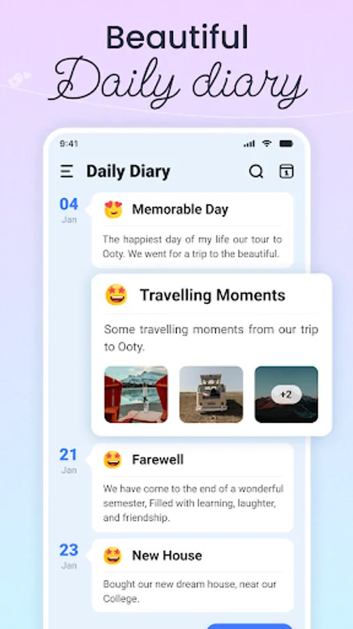 Journal & Diary with Photos and Videos: The Picture Diary app should allow you to add photos and videos to your diary entries, providing a visual record of your memories. Add photos to the diary and lock diary with pattern lock.