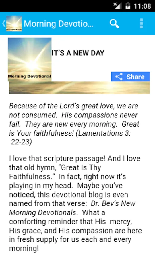 New Morning Devotionals promote deeper spiritual understanding, meaningful living, and practical Christianity at work and home. As you read, reflect on, and apply the concepts and strategies Dr. Bev Smallwood shares in this devotional, you will experience a sharpened awareness of your own personal habits of thought and action. This will allow you to choose to align “what you think and what you do” with “who you really are.” You will learn to rise above difficult circumstances and, with God’s help, come out stronger on the other side.