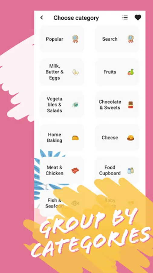 Categorization of products: Daily Food can show them grouped in the main list. You could create categories by type of product, or by the areas where they are located, which will help you to go around the supermarket in less time.