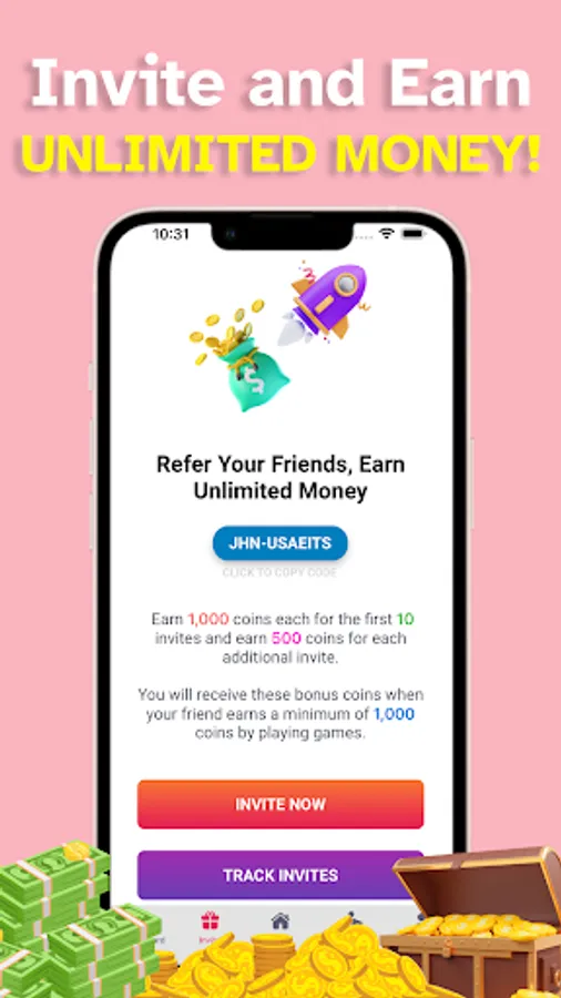 ✔ Invite your friends: Only app that gives you unlimited money for inviting your friends. Share your invite code and earn money.