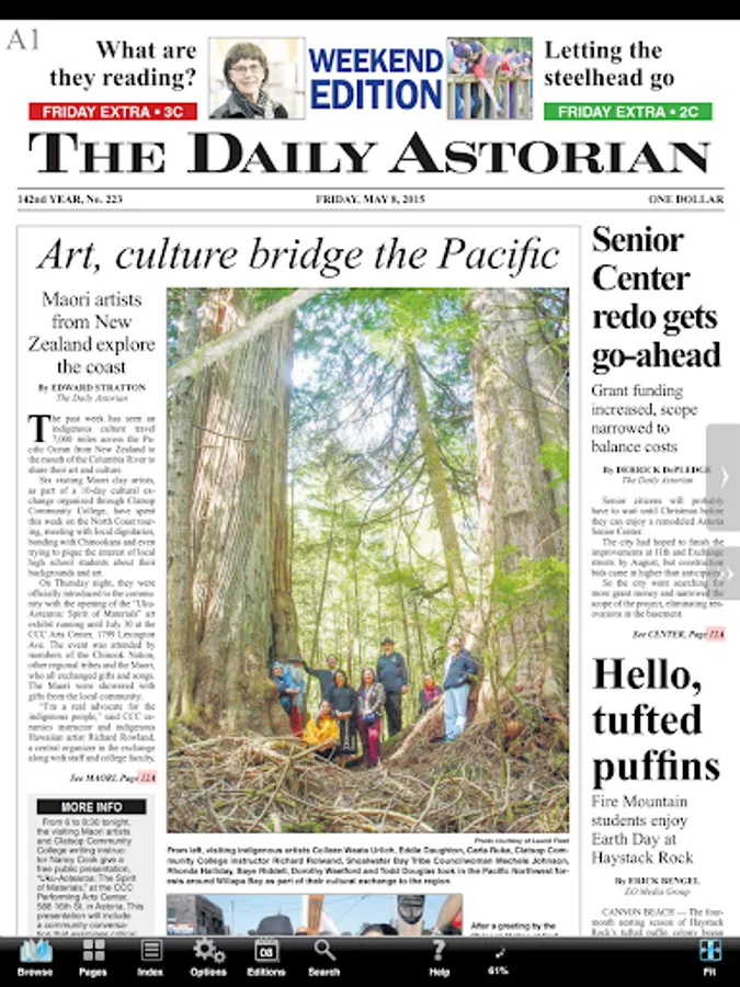 You can flip through pages and skim headlines as you would the printed edition. But better than that, The Astorian e-Edition allows you to enlarge type with the tap of a finger, or jump instantly to the conclusion of a story on another page. You can link to websites mentioned in stories with a single touch, or fire off an e-mail to an address linked from the newspaper. Even better, the e-Edition includes videos and photo galleries with many stories. And if you missed the paper one day, don't worry. The Astorian e-Edition lets you download past e-Editions, too.