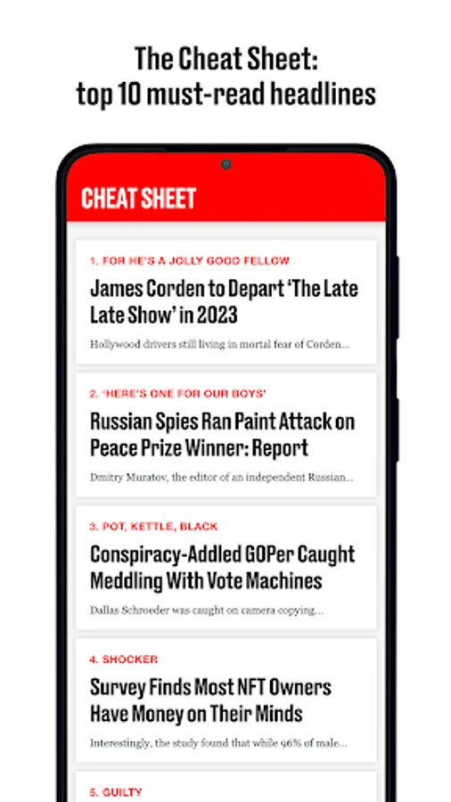- The Cheat Sheet™, a speedy, smart summary of all the news you need to know (and nothing you don’t).