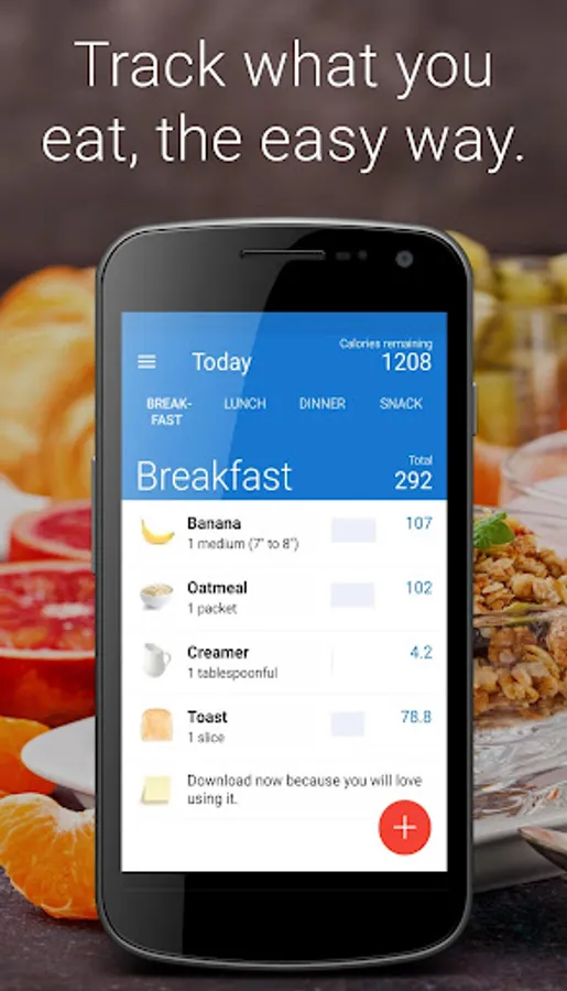 This app helps you control your diet and eat healthier, by making it easy to track what you eat. The design is optimized to make entry as quick as possible, with 1 click entry, and recent food suggestions. The built in database already has thousands of food items and if yours are not known, adding them is easy.