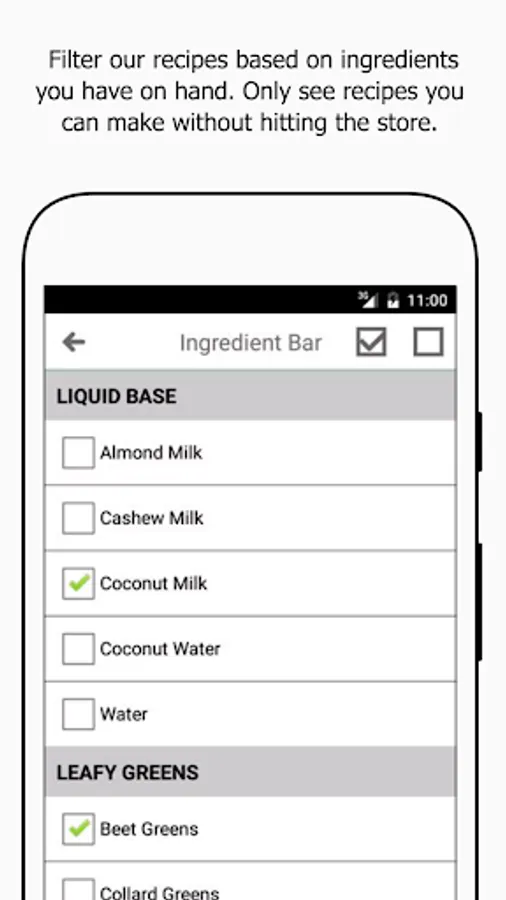 I'm loving this app so far! I like the grocery list function. The size and spacing of the text is perfect for on-the-go reference at the store. The app is very intuitive and I love how they've categorized the types of smoothies. Green smoothies have improved my health and given me so much more energy. My toddler loves them too! -Joanna Joy