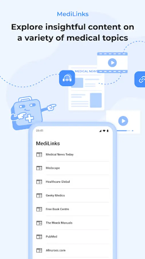 You can find a bunch of useful medical links about the most updated medical news, research, or books, the most useful video clips on a variety of topics in medicine, a series of clinical skills videos, clinical cases, and quizzes.