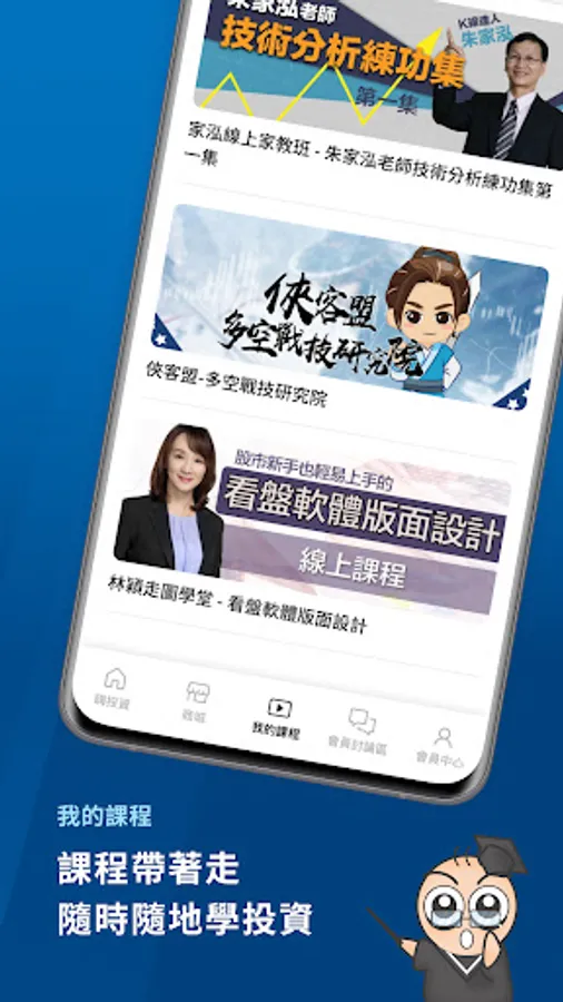 Watch the articles, videos, live courses, etc. provided by the financial academy you purchased or subscribed to.