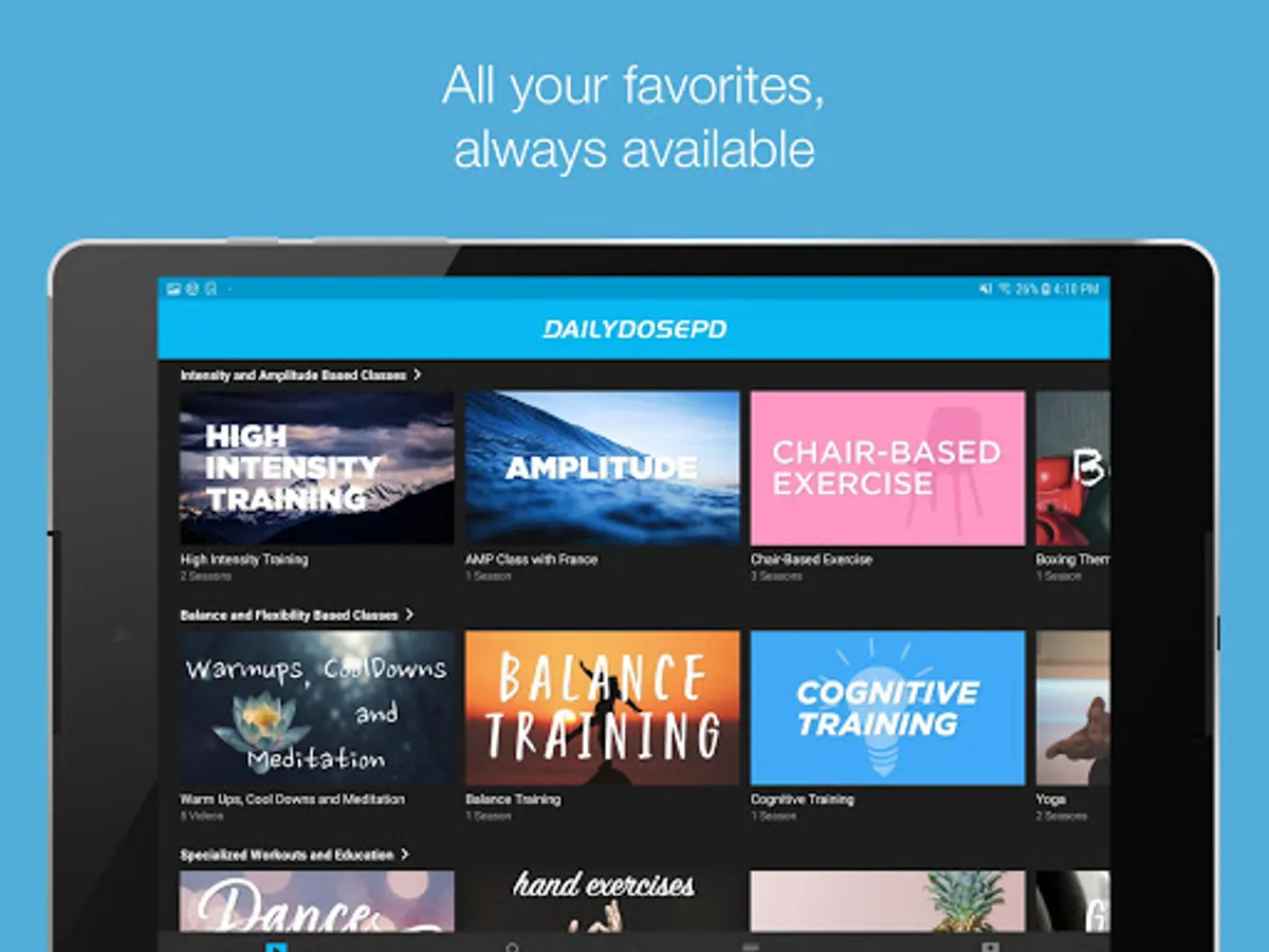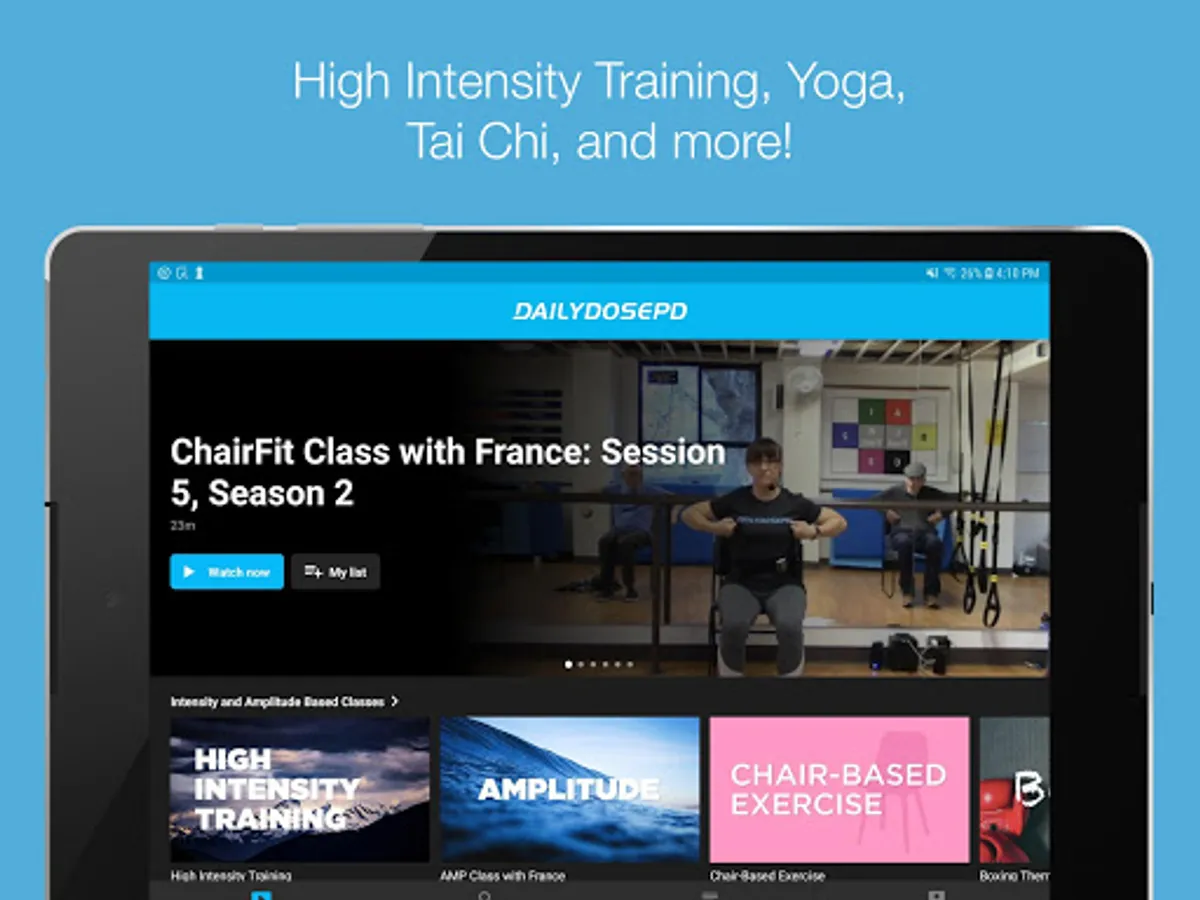 Subscribe to Daily Dose workouts for Parkinson's Disease. Custom workouts designed specifically for people with PD using research-backed methods proven to slow the progression of the disease including High Intensity Training, Yoga, Tai Chi, Balance Training and Vocal Training. Gain access to all of our past workouts and join in new workouts posted weekly as well as our livestream events.