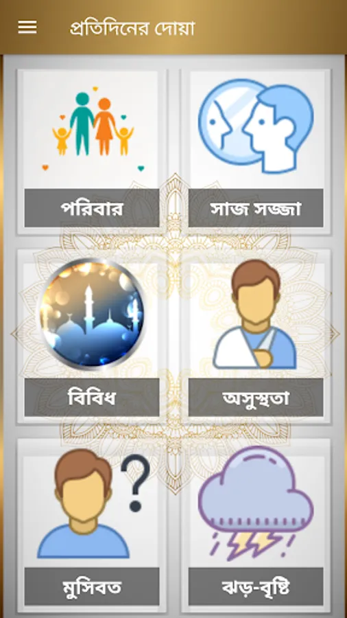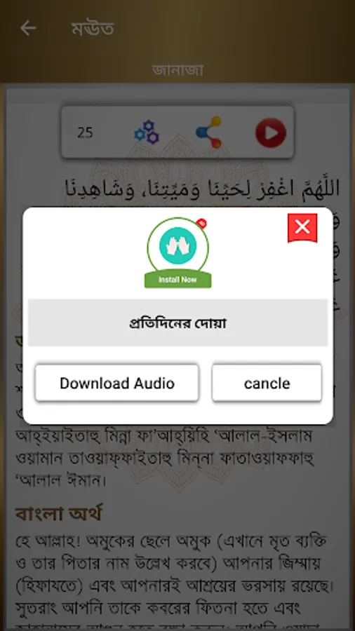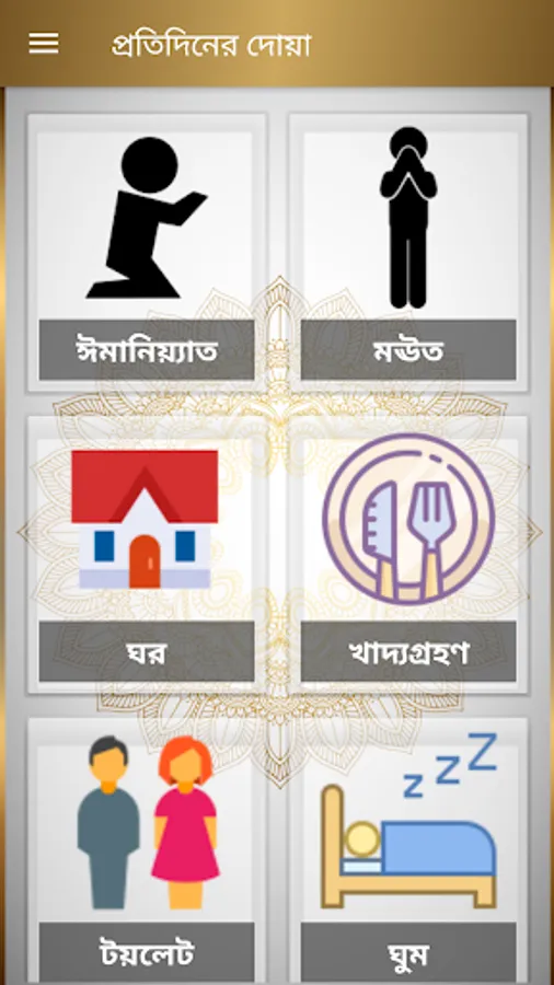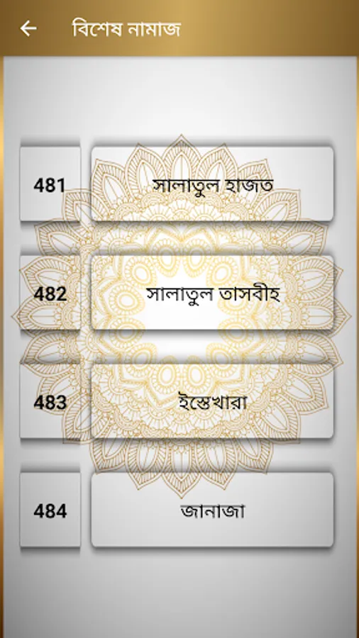৬. All prayers related to prayer (Takbir Tahirima, Sana, Sura, Ruku, Tasbih, Qoma, Jalsa, Sajda, Tashahud, Salaam, Dua Masurah Esthekhara, Janaza, Salatul Hazat, Salatut Tasawih)