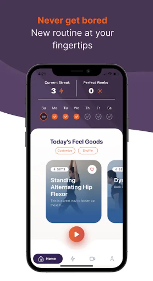 You will have a new routine waiting for you every time you open the app, so you won’t have to worry about getting bored with the same old routine every day. You can now stay consistent with feeling good and be more productive and happier throughout the day. Feel how movement can be a consistent part of your life so you will be more likely to engage in healthier lifestyle choices unlocking your true health potential.