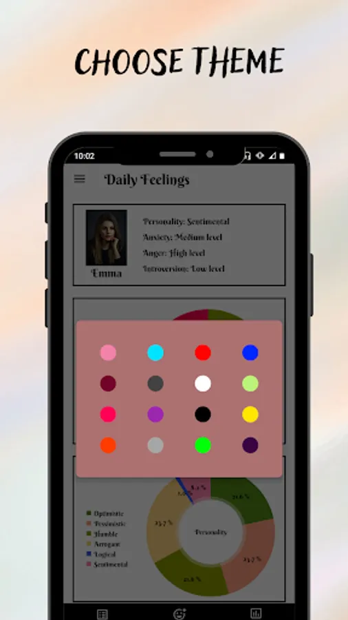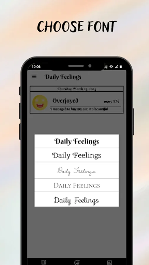 To further customize the experience, Daily Feelings lets you choose the app's theme and font. This ensures that the app matches your style and preferences.