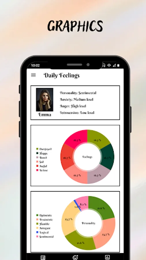 The personality test helps identify your emotional tendencies, allowing you to better understand what's behind your reactions. Plus, you can save your sentiments to a custom list, making it easy to review later.