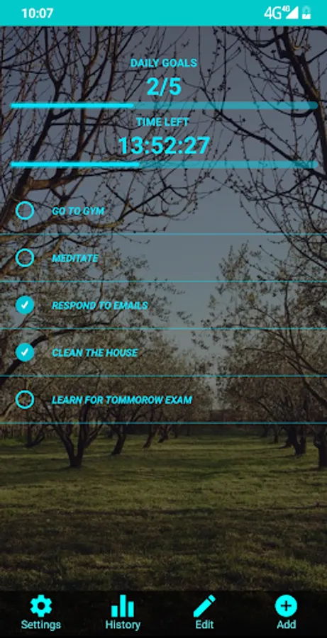 DailyGoaler force users to write their daily goals every morning and visualise the time remaining till the end of the day. Writing goals every morning helps boost of productivity and keeps You on the track. All the goals are removed at the beginning of the next day automatically and the data is stored in the statistics. Users can track their productivity with the graph visualisation. DailyGoaler us a very simple app with the main goal to boost everyday productivity.