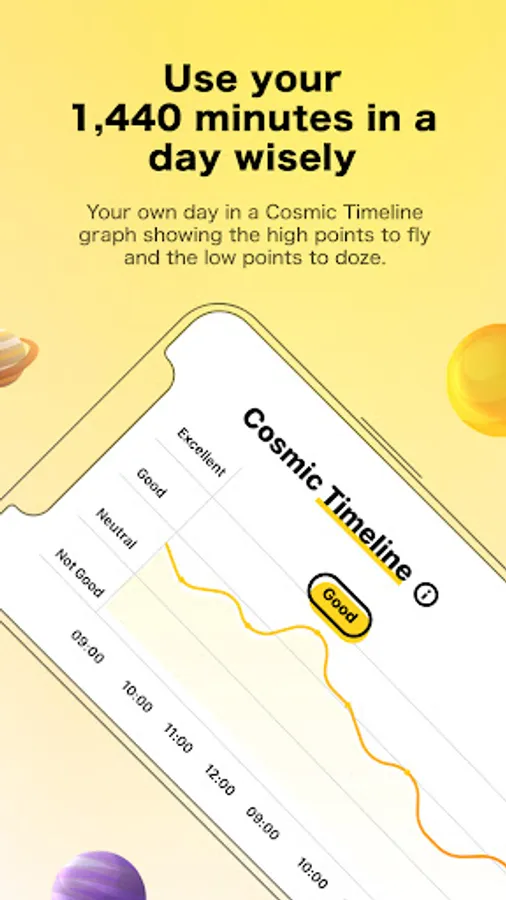 The Cosmic Weather: Your own day in a Cosmic Timeline graph showing the high’s to fly and the lows to doze.