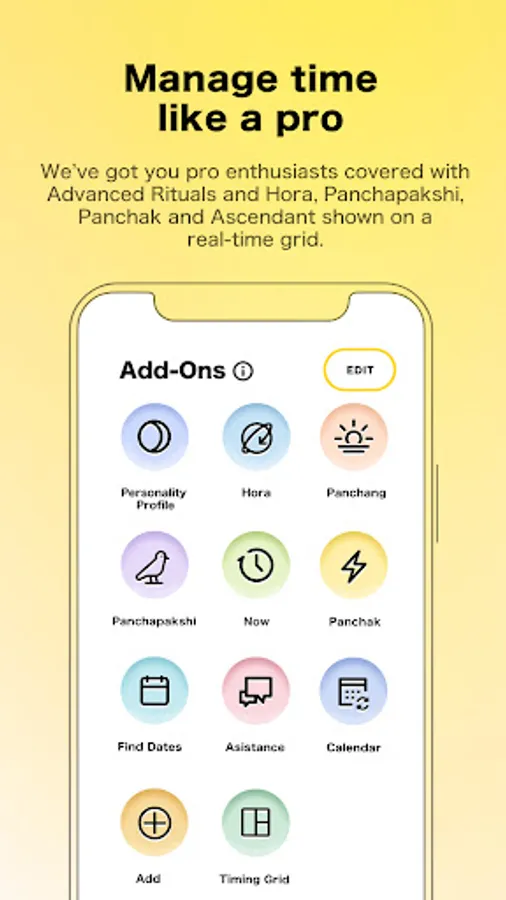 Manage time like a pro: We’ve got you pro enthusiasts covered with Advanced Rituals and Hora, Panchapakshi, Panchak and Ascendant shown on a real-time grid.