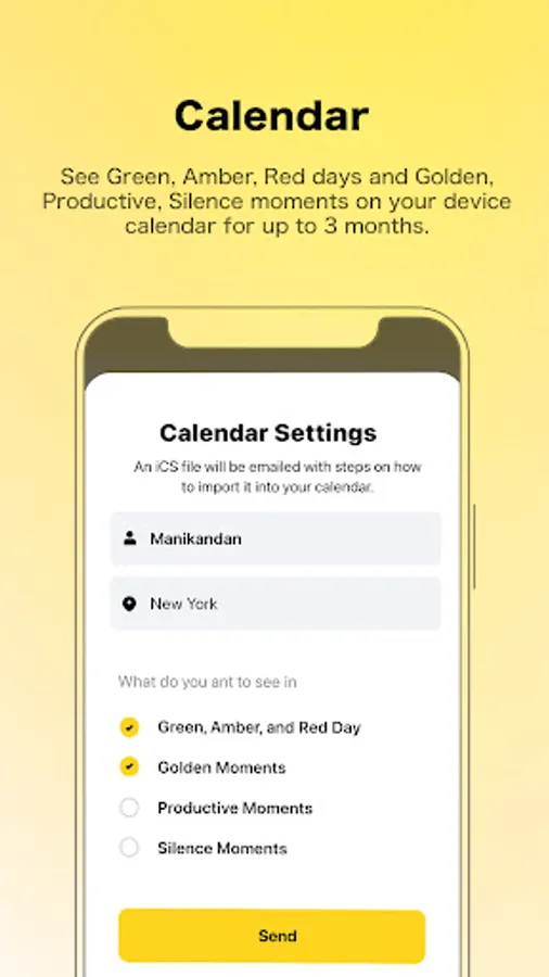 Calendar: Sync your align27 data (Green, Amber, Red days and Golden, Productive & Silence moments) with your device calendar