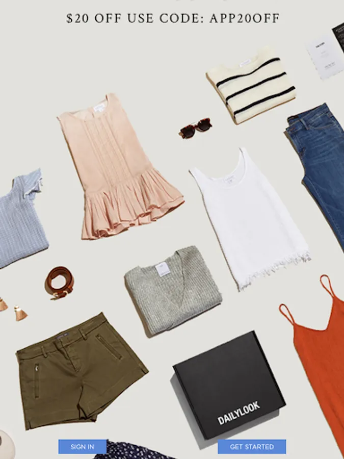 DAILYLOOK is an online personal styling experience that provides on-trend looks to elevate your style - saving you time and effort. We send you a box of clothing, hand-selected by your own personal stylist, based on your body shape and style. Only buy what you love and return the rest. Download now to get $20 off your $40 styling fee.