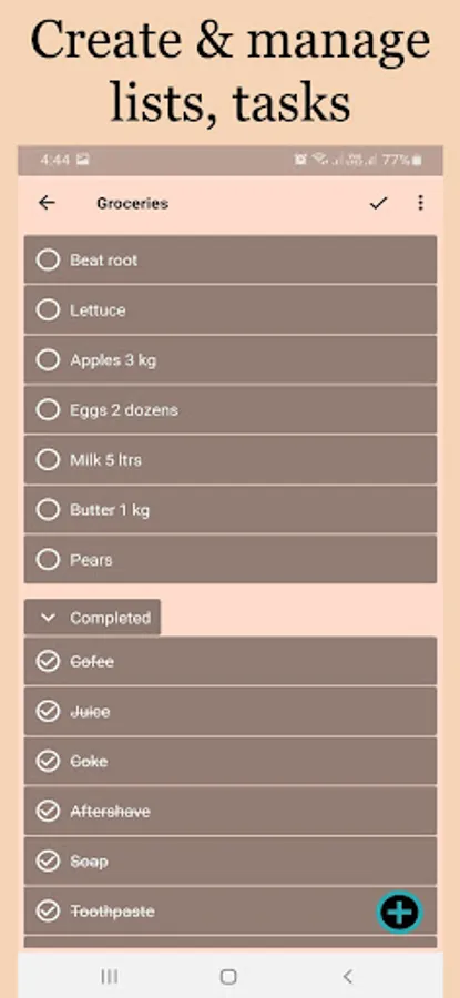 βοΈ Task Lists : Create to do list or checklist, shopping list for groceries or daily work note list. Rearrange items with drag and drop and mark tasks when complete. Add subtasks for more detailed task description.β¨