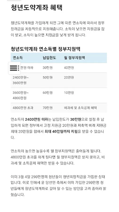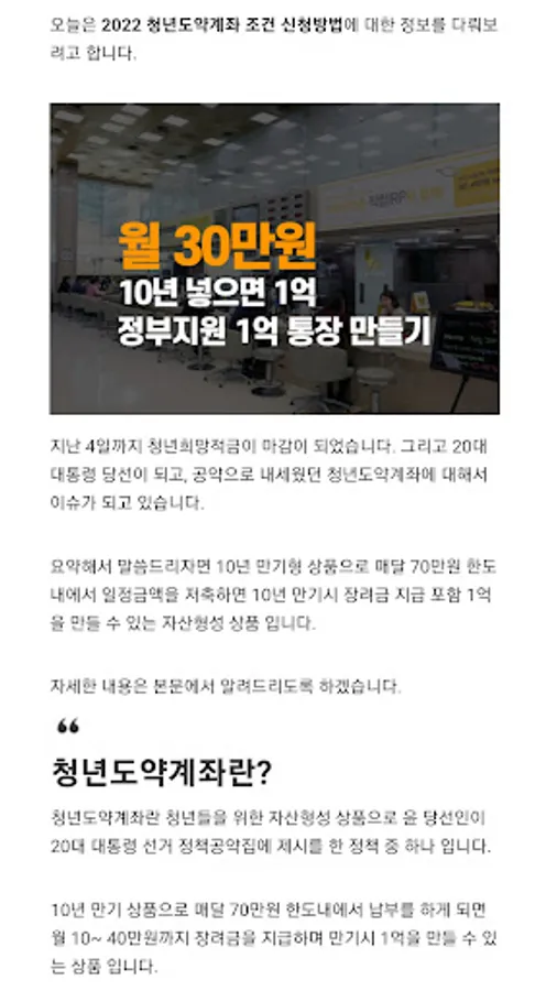 This is an application program that provides guides on the conditions for joining the Youth Leap Account, an application target, and how to apply, which is a youth wealth formation welfare system.