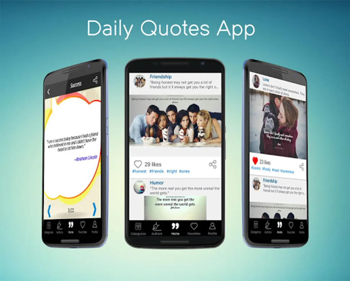 Daily Quotes App shows you latest feed of quotes and our curators collect it from around the world and transform quotes into beautiful imagery.