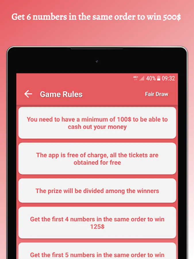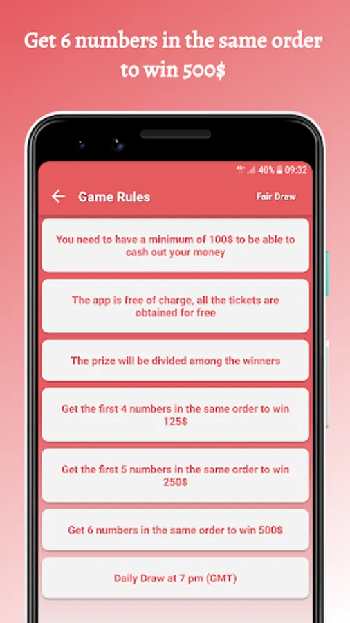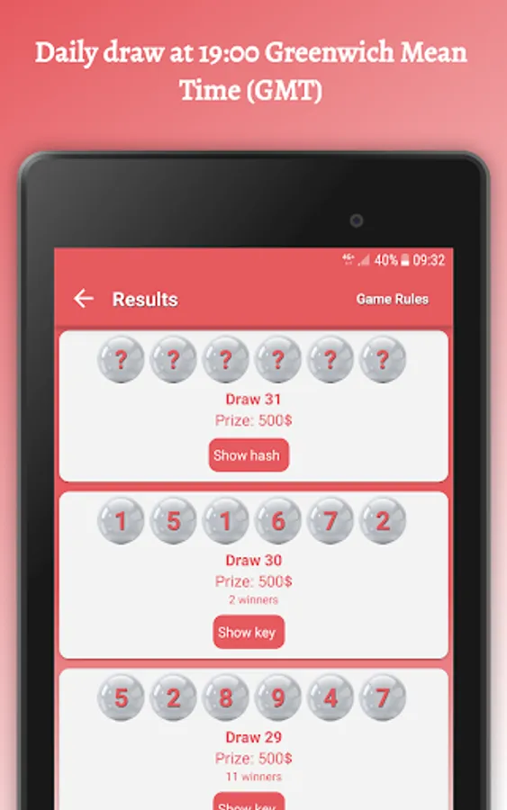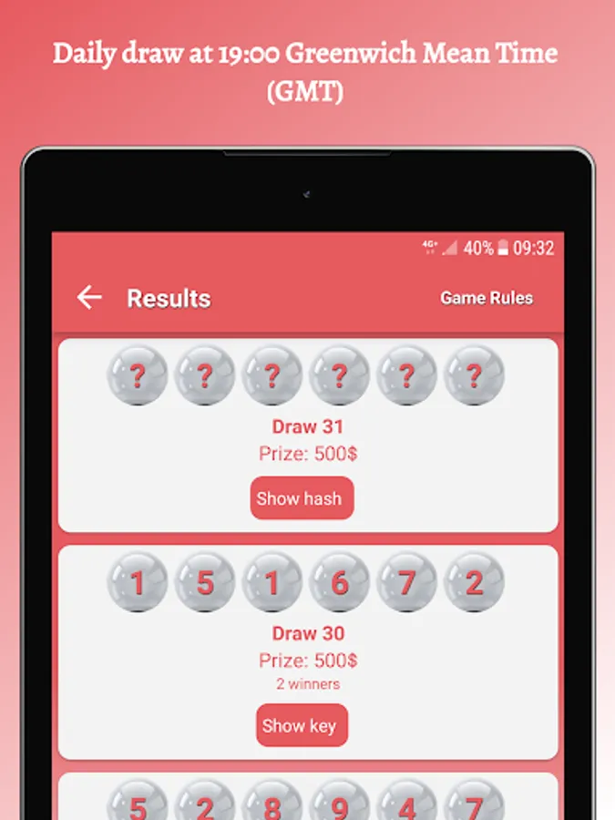 This is not like any other game, the chances to win are very high! Each tickets consists of 6 numbers between 1 and 9, to win your numbers should match at least the first 4 in the same order of the ticket shown in the Results.