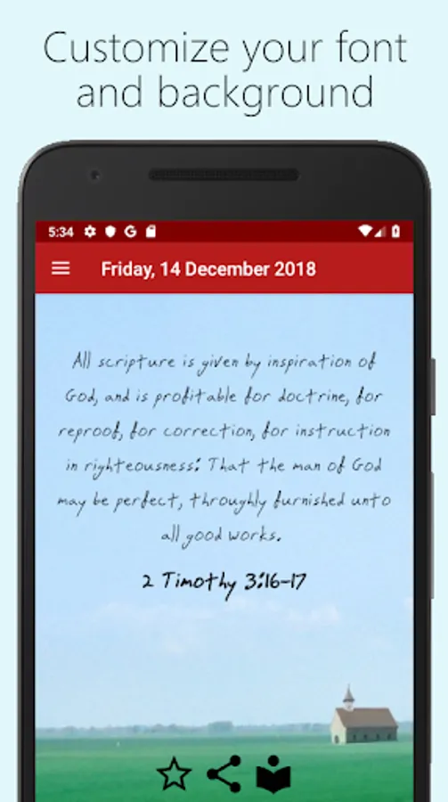 - personalize the appearance of your verse of the day, with a different selection of background images and fonts