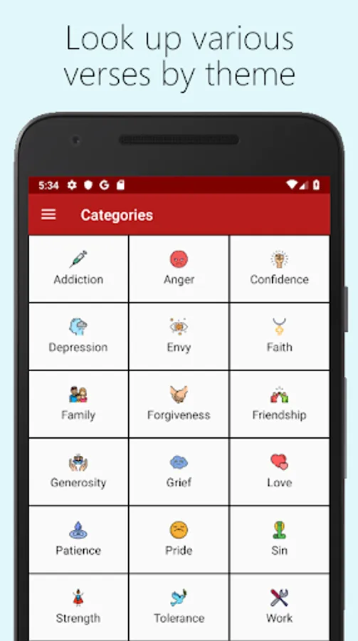 - Search verses by subject, for when you need encouraging verses, motivating verses or any verse that helps you in your daily life