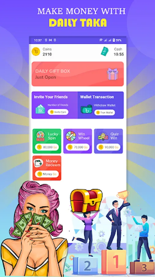 Our Daily Taka App provides the best platform to play different games of your choice and get cash rewards for Playing games.