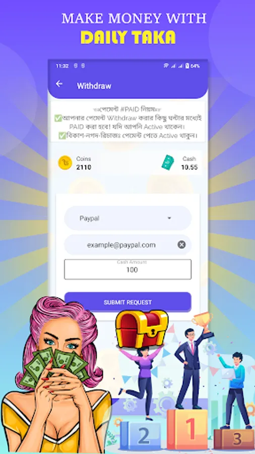 You will be able to withdraw your money through development, 💵Coinbase, 💵bKash, 💵Nagad, 💵Paypal, 💵Binance and 💵Paytm when you have enough income when you finish your work.