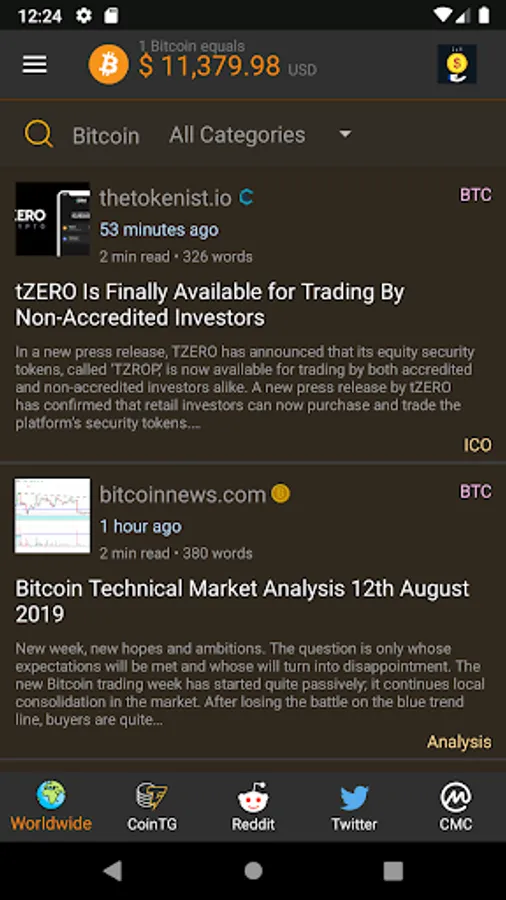 Bitcoin News & Crypto News shares immediate access to all the news you need in the crypto world. The app is designed to have a clean UI, intuitive design and it also comes with filters and categories that make browsing news a breeze.