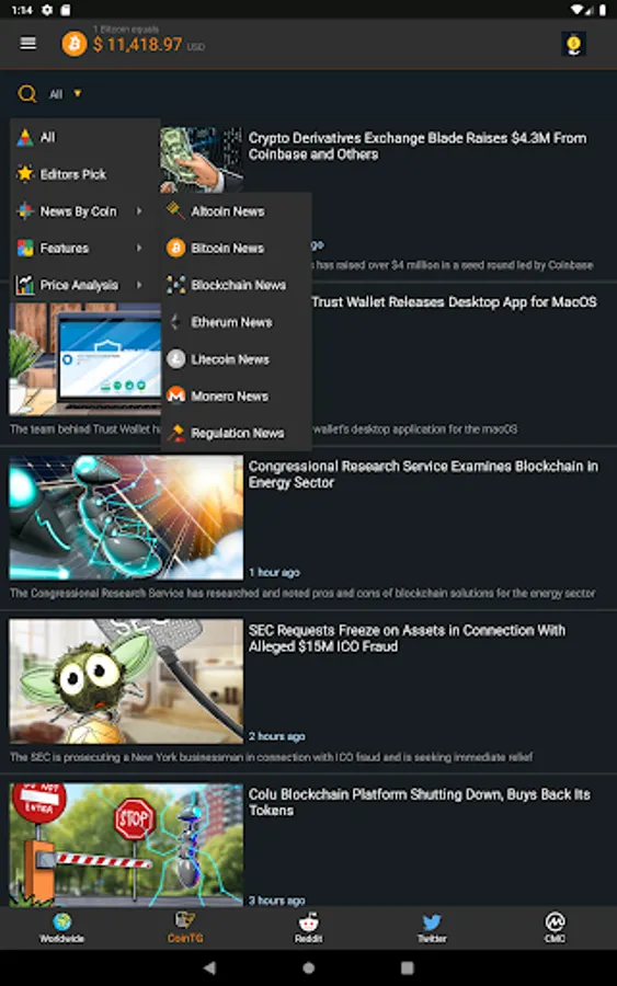Aside from covering some of the best Bitcoin and Cryptocurrency news websites online, Bitcoin News & Crypto News app also covers news from CryptoContro.IO, Reddit and Twitter. We always want you to stay up to date with the best and most relevant news, and you can rest assured that we always strive to keep news as accurate and as professional as possible.