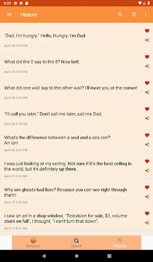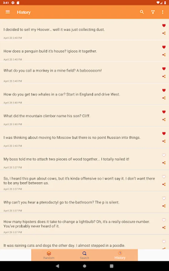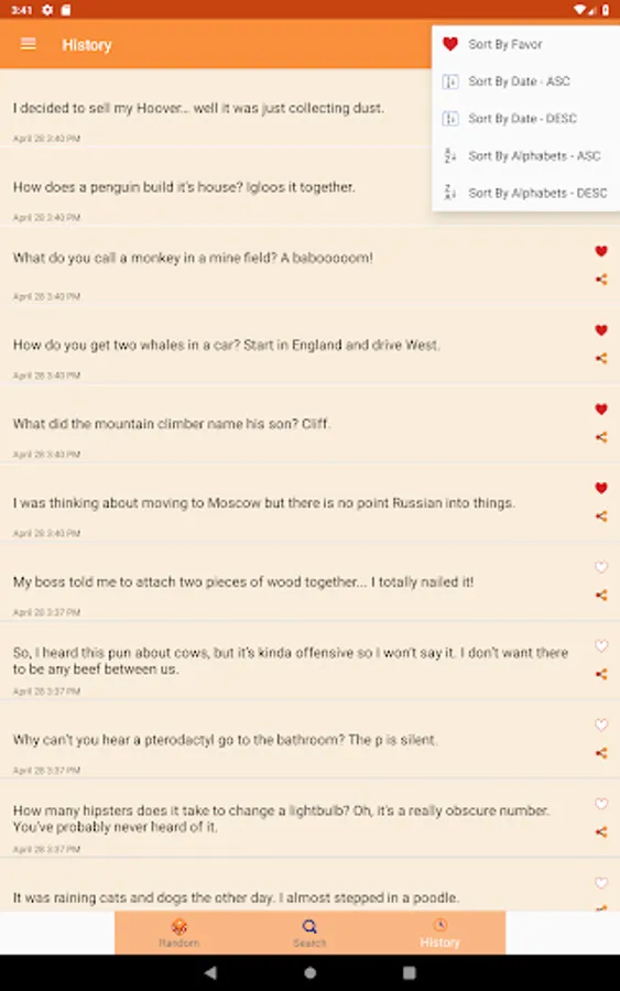 Plus, we are adding new lame, silly and funny dad jokes all the time. So you can easily find the right set of jokes as you see fit. We also let you sort jokes by date or the letter they start with if that’s what you want. Just consider giving Dad Jokes – Funny a shot today!
