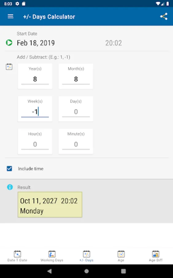 - Calculate addition or subtraction for years, months, weeks, days, hours, and minutes