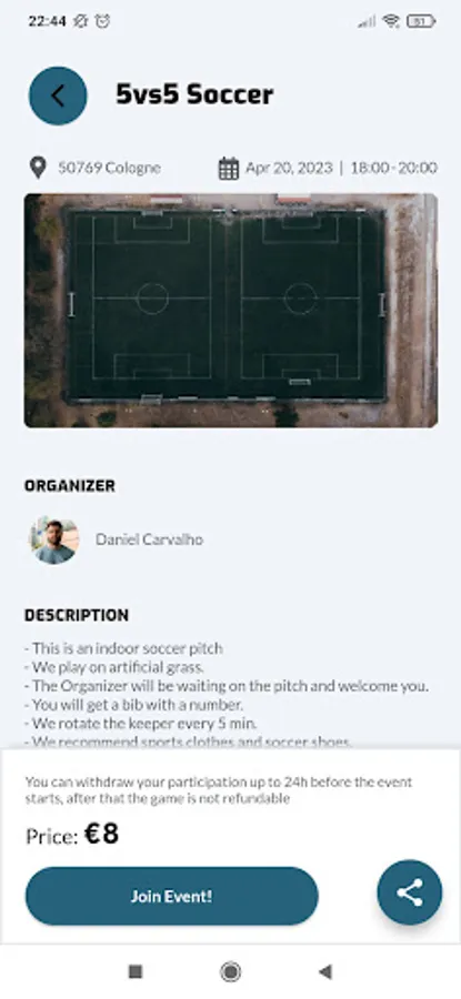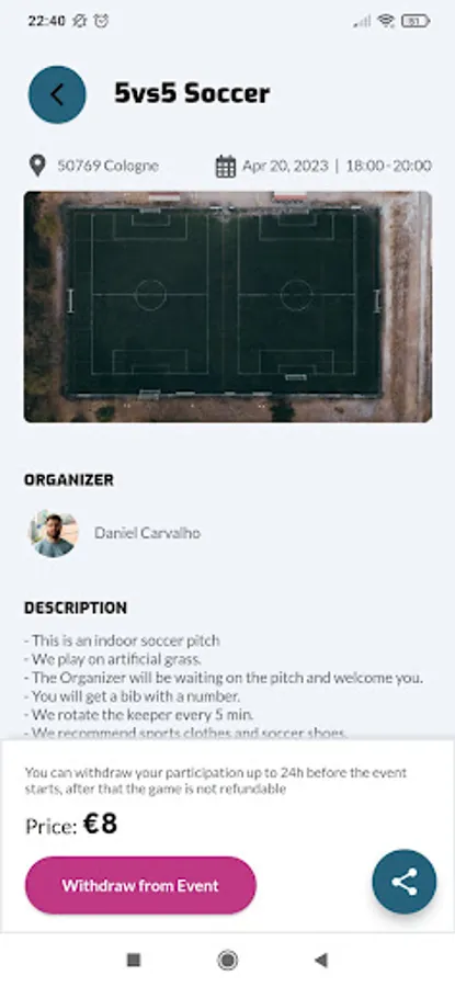Here is how it works: Download the app. Choose your city. Explore events near you and select the most suitable event for you. Book your spot. Meet your fellow players and have fun!