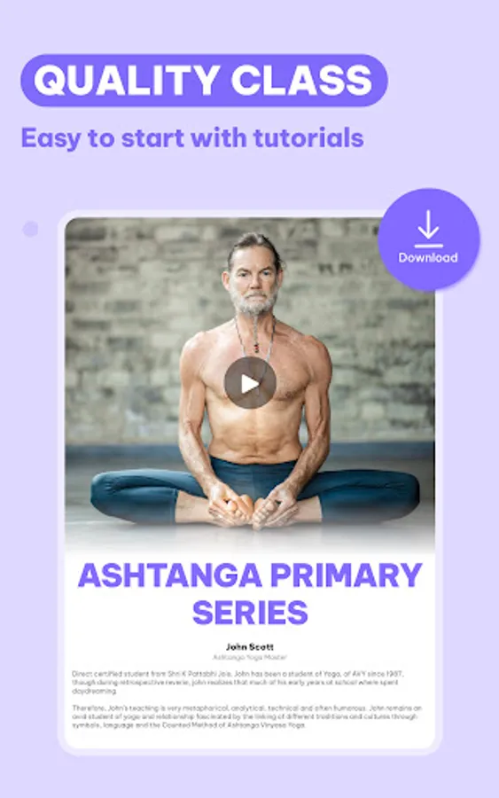 Download yoga class for offline use and take it with you anywhere. Practice in your living room, in a hotel, on the beach, or wherever you go.