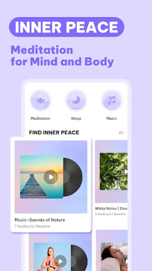 Specially designed meditation classes to find inner peace. Boost your energy quickly, release your stress with the 10 mins meditation class, or follow the gentle voice into a sweet dream.
