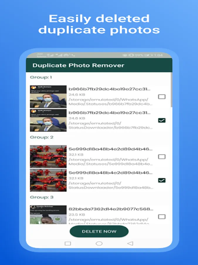 The Duplicate Images Remover app is a powerful duplicate photo and video finder and remover app that scans and deletes many duplicate photos and duplicate videos. With the Duplicate Photo remover and Video Remover app, you can find and delete duplicate files and free up more storage space on your device.