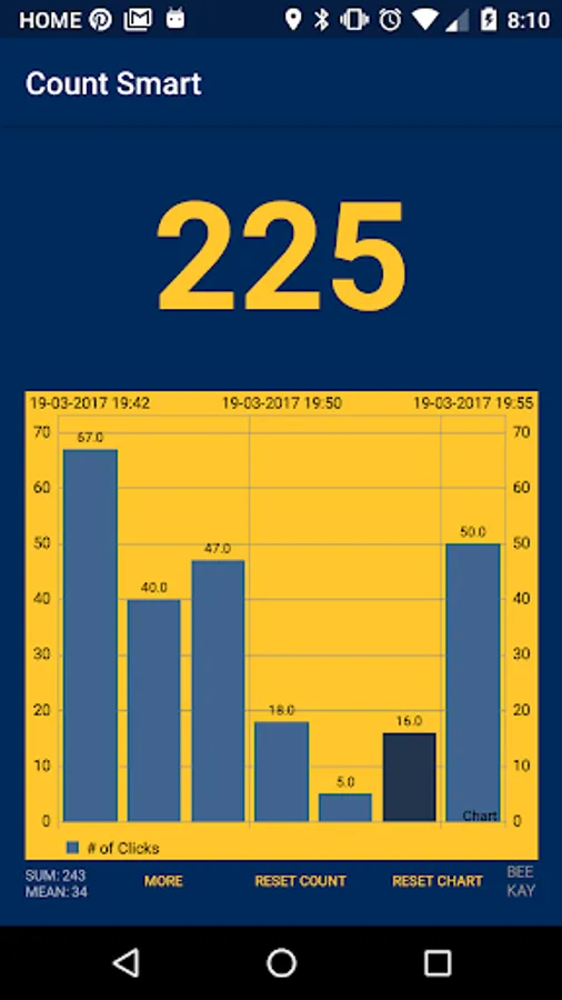 3. You can clear the data and start fresh by pressing on the "Reset ..." buttons (for count or the chart, as required).