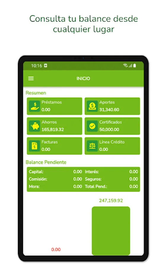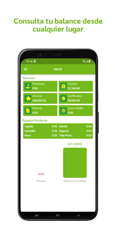 Con nuestra aplicación móvil podrás acceder a todos tus productos, desde cualquier parte del mundo.