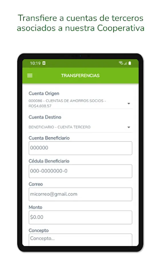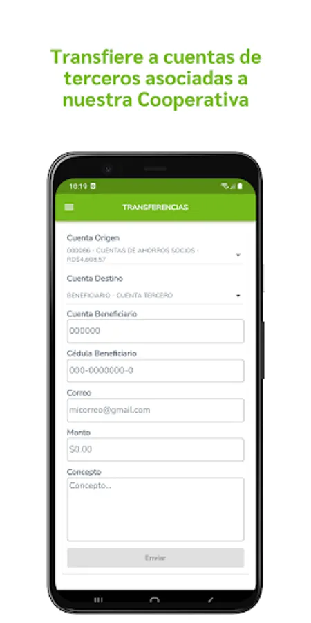 - Transferir a cuentas de terceros, asociados a nuestra Cooperativa.