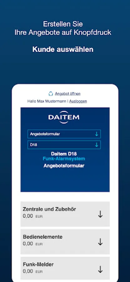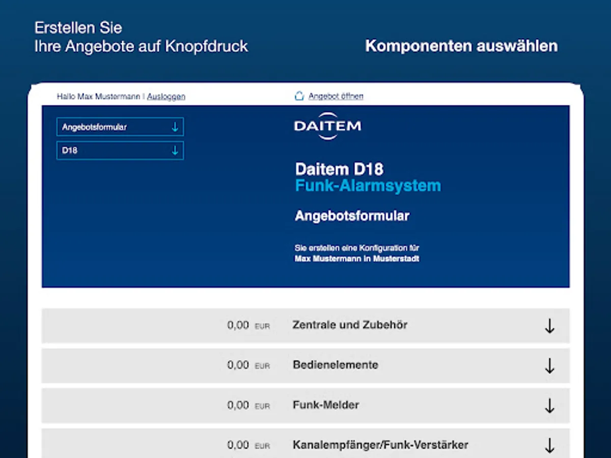 After registering, you can get started right away and configure the perfect Daitem security solution with just a few clicks. You will conveniently receive the offer as a Word file by email and can adapt the file as you wish.
