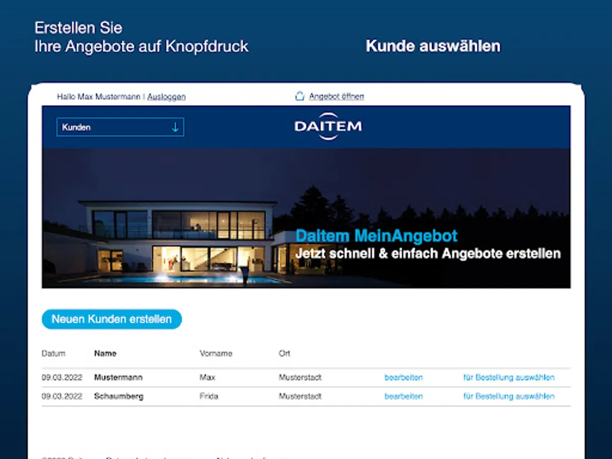 - With Daitem MyOffer you always have an overview of your offers for -- - your customers. If you have any questions, simply contact marketing@daitem.de.