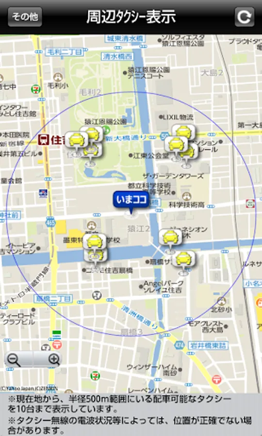 4. [Others] Use the peripheral taxi Display] function, you can grasp the taxi position you are within a radius of 500m from the current position.