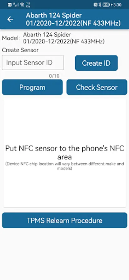 An NFC tool for automobile tire pressure sensor, which can be used for sensor programming and sensor status reading.
