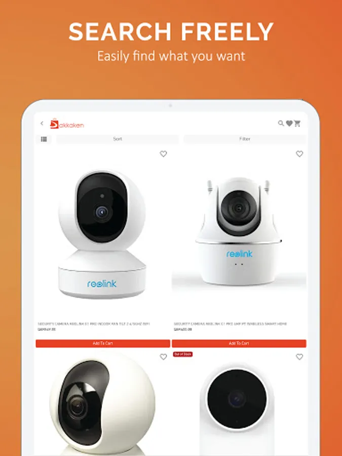 - Cross-platform shopping, whether on a smartphone, a tablet or even on a desktop, Dakkaken app will keep all the products on your cart as long as you are logged in to your account.