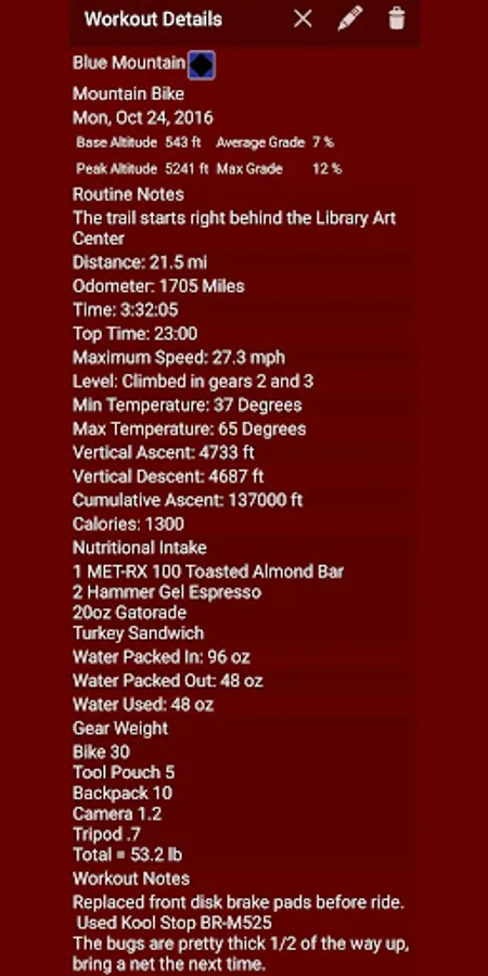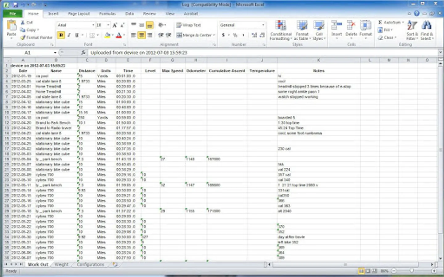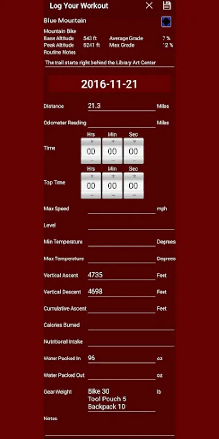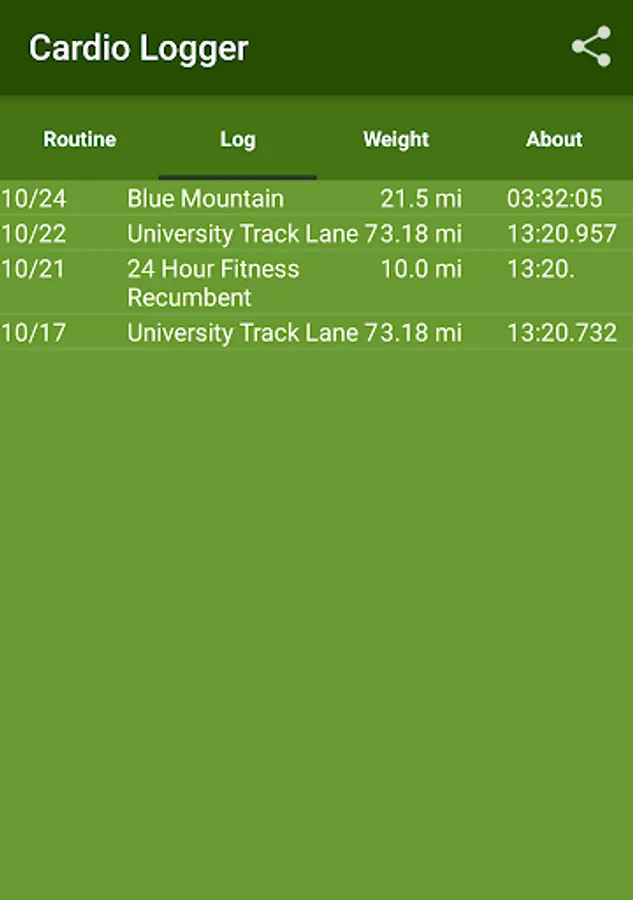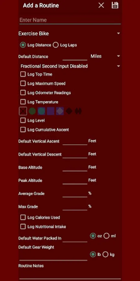 Use one log to record a variety of workouts.