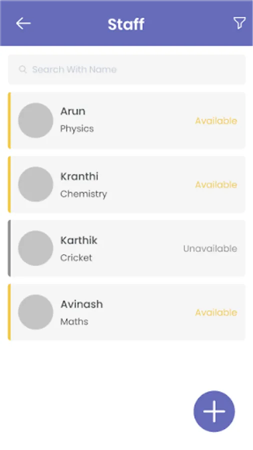 4. Manage Staff: Monitor staff availability. Staff will have the ability to login to the app and view the assigned classes, appointments, capture attendance, and request for leaves.